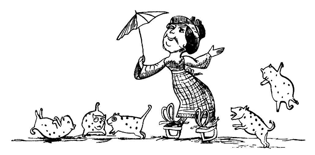 Внутри него жил какой-то вечный неугомонный припляс. Приглядитесь к его рисункам, украшающим «Книги нонсенса»; все его персонажи стоят на пуантах, размахивают руками и ногами, они как бы танцуют.