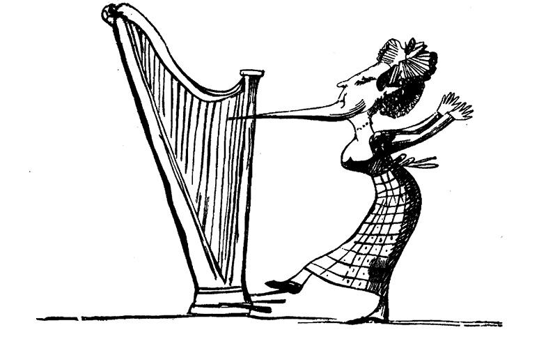Подбородком играла на арфе.