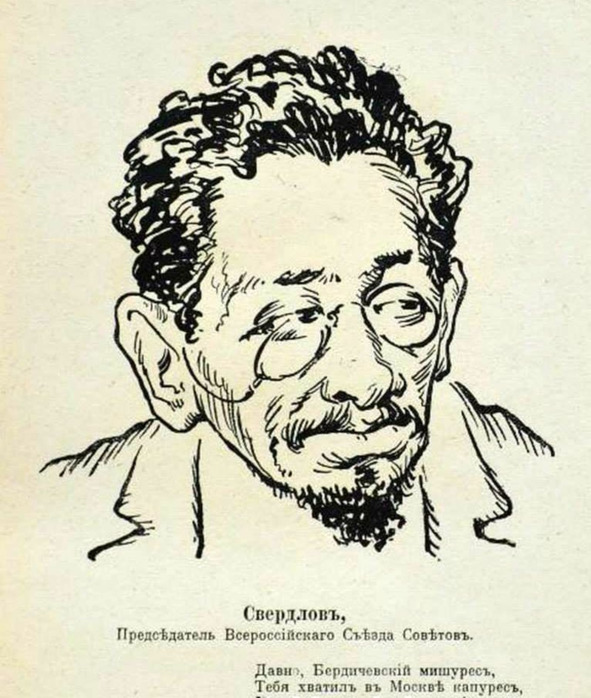 В 1921 году Германское народное издательство выпустило карикатуру на уральского революционера Якова Свердлова. Нарисовал ее художник Отто Константин Готлиб фон Курзелль, позднее оберштурмбаннфюрер SS — любимый художник Гитлера.