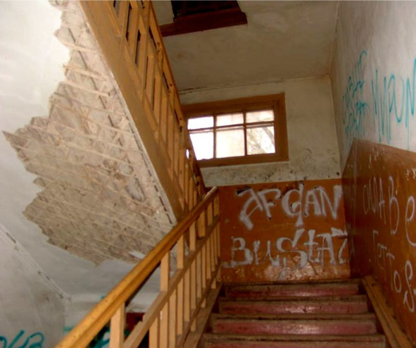 Уралмаш. Подъезд дома на улице Калинина.5, где жил немецкий архитектор из «Баухауза» Бела Михайлович Шефлер (по другим данным Шайбер Абрам Карлович). В 1930-е годы работал архитектором Управления капитального строительства Уралмашзавода. Первый раз арестован 12 февраля 1938 года по обвинению в шпионаже в пользу Германии. Повторно арестован 25 октября 1941 года и приговорен к расстрелу 3 ноября, по обвинению в шпионаже. Реабилитирован Указом Президиума Верховного Совета СССР в 1989 году.