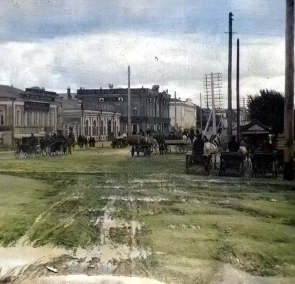 Главный проспект Екатеринбурга, у Городского театра. В 1876 году Екатеринбург посетил немецкий путешественник Отто Финш: «Екатеринбург один из лучших сибирских городов…; ряды красивых домов, базар и прекрасные церкви имеют почти величественный вид. К сожалению, улицы его находятся в ужасном состоянии… Это были не просто испорченные мостовые, но все улицы и площади были покрыты сплошной массой грязи. Эта масса походила на асфальт, который, казалось, должен отвердеть с минуты на минуту, но он не твердел, и извозчики развозили своих пассажиров, забрасывая их грязью, в которую колеса уходили по ступицу».