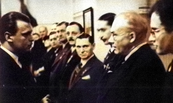 Пятый справа — барон Александр Меллер- Закомельский. Берлин. Январь 1939 года. Дела у потомков уральских купцов Зотовых перед революцией 1917 года шли прекрасно. Да еще и в 1912 году Санкт-Петербургское губернское земское собрание избрало надворного советника В.В.Меллер-Закомельского в Государственный совет России. В его квартире «особняка Вельцина» на Мойке.75 проходили некоторые правительственные заседания дореволюционной России. А, по Санкт-Петербургу стали ходить слухи, что владелец квартиры входит в число «влиятельных масонов». Эти слухи были не беспочвенны. Гораздо позже в эмиграции, его сын Александр читал публичные лекции на тему «Масонство в свете испанских событий», а во время второй мировой войны стал вообще работать в Берлине с одним из идеологов германского национал-социализма Геббельсом, участвуя в подготовке агитационных материалов «по еврейскому вопросу». Он даже пытался привлечь на свою сторону философа Ивана Ильина, на что получил от последнего меткое замечание, что «…в организацию растленной сволочи он не вступает…». Такие подробности из истории семьи потом тщательно замалчивались, ведь скончался он только 5 мая 1977 года в Барселоне, от старости.