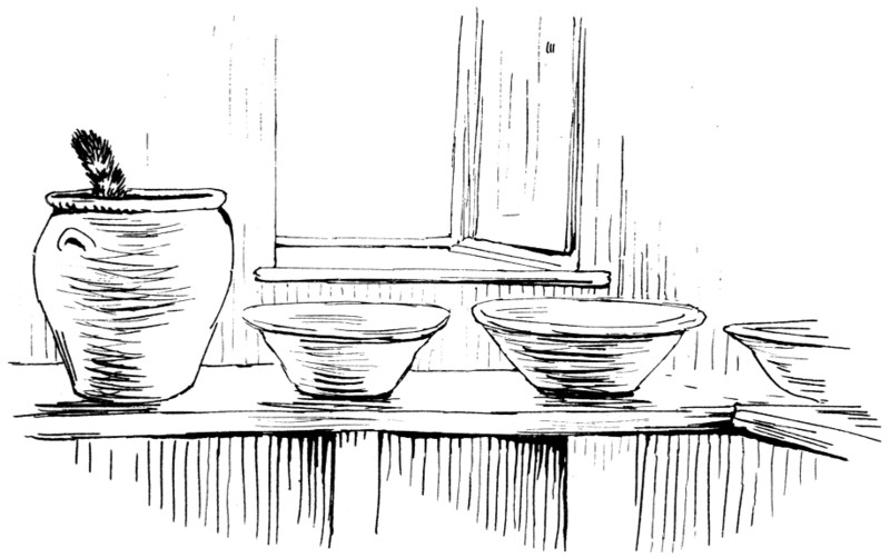 They went straight to the dough which was set to rise in a pan before the fire.