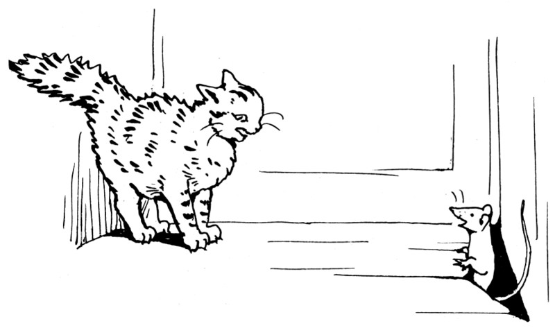 "Yes, it is infested with rats," said Tabitha tearfully. "I caught seven young ones out of one hole in the back kitchen, and we had them for dinner last Saturday. And once I saw the old father rat—an enormous old rat, Cousin Ribby. I was just going to jump upon him, when he showed his yellow teeth at me and whisked down the hole."