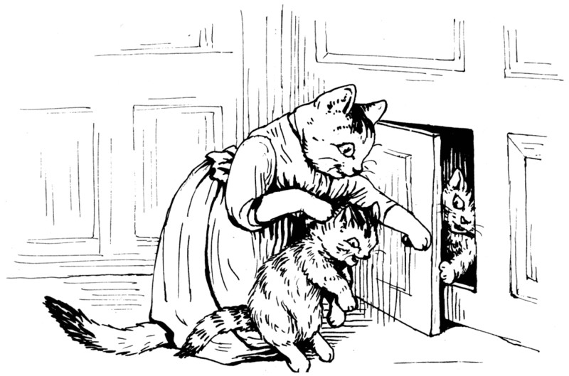 Once upon a time there was an old cat, called Mrs. Tabitha Twitchit, who was an anxious parent. She used to lose her kittens continually, and whenever they were lost they were always in mischief!