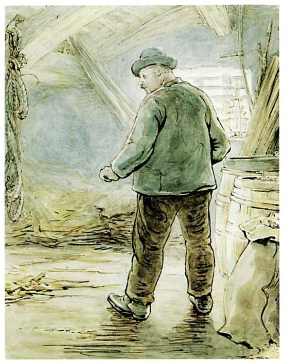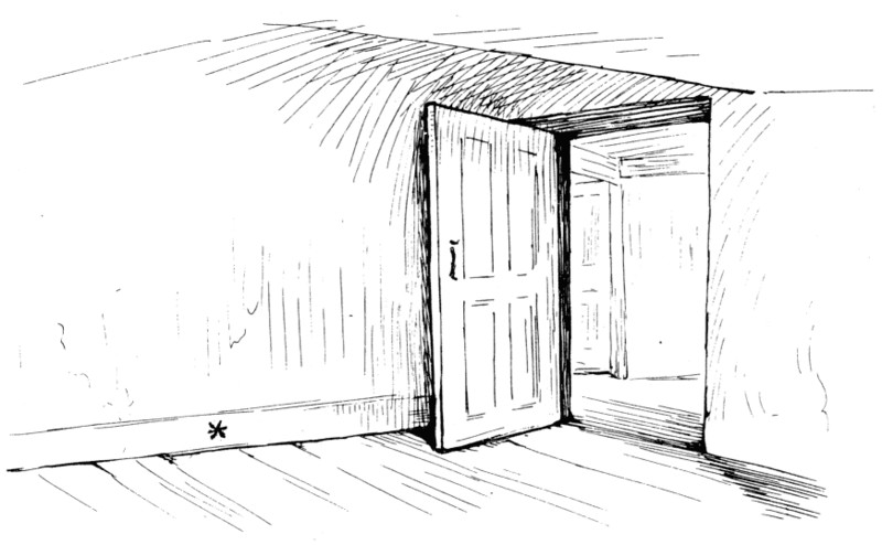 He groped his way carefully for several yards; he was at the back of the skirting-board in the attic, where there is a little mark * in the picture.