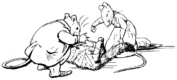 "A rolling-pin and butter! Oh, my poor son Thomas!" exclaimed Tabitha, wringing her paws.