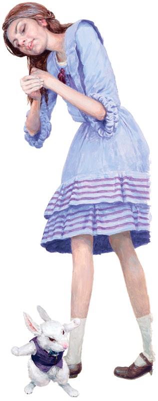 Кролик подпрыгнул, уронил перчатки и веер, метнулся прочь и тут же исчез в темноте13.