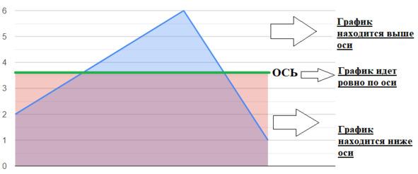 Негативная зона — это та зона, где линия графика опускается ниже нуля. От –1 до –9.