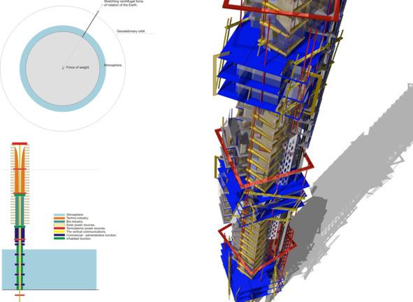 Сооружение Anticonditional city высотой более полутора тысяч километров удерживается в равновесии с помощью центробежной силы вращения Земли.