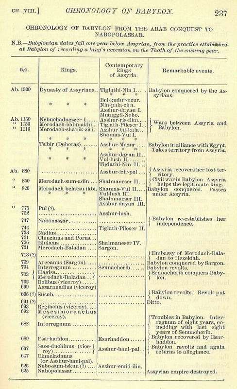 The small province included within these limits—smaller than Scotland or Ireland, or Portugal or Bavaria—became suddenly, in the latter half of the seventh century B.C., the mistress of an extensive empire. On the fall of Assyria, about B.C. 625, or a little later, Media and Babylonia, as already observed, divided between them her extensive territory. It is with the acquisitions thus made that we have now to deal. We have to inquire what portion exactly of the previous dominions of Assyria fell to the lot of the adventurous Nabopolassar, when Nineveh ceased to be—what was the extent of the territory which was ruled from Babylon in the latter portion of the seventh and the earlier portion of the sixth century before our era?