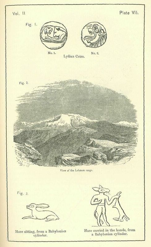 West and south-west of this region, between it and the Mediterranean, and extending southwards from Mount Amanus to the latitude of Tyre, lies Syria Proper, the Coele-Syria of many writers, a long but comparatively narrow tract of great fertility and value. Here two parallel ranges of mountains intervene between the coast and the desert, prolific parents of a numerous progeny of small streams. First, along the line of the coast, is the range known as Libanusin the south, from lat. 33° 20' to lat. 34° 40', and as Bargylus in the north, from lat. 34° 45' to the Orontes at Antioch, a range of great beauty, richly wooded in places, and abounding in deep glens, foaming brooks, and precipices of a fantastic form. [PLATE VII., Fig 2.] More inland is Antilibanus, culminating towards the south in Hermon, and prolonged northward in the Jebel Shashabu, Jebel Biha, and Jebel-el-Ala, which extends from near Hems to the latitude of Aleppo. More striking than even Lebanon at its lower extremity, where Hermon lifts a snowy peak into the air during most of the year, it is on the whole inferior in beauty to the coast range, being bleaker, more stony, and less broken up by dells and valleys towards the south, and tamer, barer, and less well supplied with streams in its more northern portion. Between the two parallel ranges lies the "Hollow Syria," a long and broadish valley, watered by the two streams of the Orontes and the "Litany" which, rising at no great distance from one another, flow in opposite directions, one hurrying northwards nearly to the flanks of Amanus, the other southwards to the hills of Galilee. Few places in the world are more, remarkable, or have a more stirring history, than this wonderful vale. Extending for above two hundred miles from north to south, almost in a direct line, and without further break than an occasional screen of low hills, it furnishes the most convenient line of passage between Asia and Africa, alike for the journeys of merchants and for the march of armies. Along this line passed Thothines and Barneses, Sargon, and Sennacherib, Neco and Nebuchadnezzar, Alexander and his warlike successors, Pompey, Antony, Kaled, Godfrey of Bouillon; along this must pass every great army which, starting from the general seats of power in Western Asia, seeks conquests in Africa, or which, proceeding from Africa, aims at the acquisition of an Asiatic dominion. Few richer tracts are to be found even in these most favored portions of the earth's surface. Towards the south the famous El-Bukaa is a land of cornfields and vineyards, watered by numerous small streams which fall into the Litany. Towards the north El-Ghab is even more splendidly fertile, with a dark rich soil, luxuriant vegetation, and water in the utmost abundance, though at present it is cultivated only in patches immediately about the towns, from fear of the Nusairiyeh and the Bedouins.