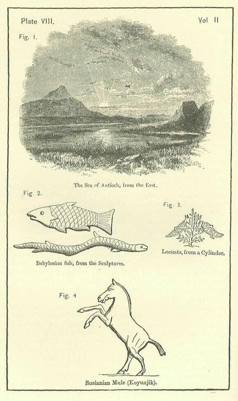 The Orontes, the great river of Assyria, rises in the Buka'a—the deep valley known to the ancients as Coele-Syria Proper—springing from a number of small brooks, which flow down from the Antilibanus range between lat. 34° 5' and lat. 34° 12'. Its most remote source is near Yunin, about seven mites N.N.E. of Baalbek. The stream flows at first N.W. by W. into the plain, on reaching which it turns at a right-angle to the northeast, and skirts the foot of the Antilibanus range as far as Lebweh, where, being joined by a larger stream from the southeast,130 it takes its direction and flows N.W. and then N. across the plain to the foot of Lebanon. Here it receives the waters of a much more abundant fountain, which wells out from the roots of that range, and is regarded by the Orientals as the true "head of the stream." Thus increased the river flows northwards for a short space, after which it turns to the northeast, and runs in a deep cleft along the base of Lebanon, pursuing this direction for 15 or 16 miles to a point beyond Ribleh, nearly in lat. 34° 30'. Here the course of the river again changes, becoming slightly west of north to the Lake of Hems (Buheiret-Hems), which is nine or ten miles below Ribleh. Issuing from the Lake of Hems about lat. 34° 43', the Orontes once more flows to the north east, and in five or six miles reaches Hems itself, which it leaves on its right bank. It then flows for twenty miles nearly due north, after which, on approaching Hama (Hamath), it makes a slight bend to the east round the foot of Jebel Erbayn, and then entering the rich pasture country of El-Ghab' runs north-west and north to the "Iron Bridge" (Jisr Hadid), in lat. 36° 11'. Its course thus far has been nearly parallel with the coast of the Mediterranean, and has lain between two ranges of mountains, the more western of which has shut it out from the sea. At Jisr Hadid the western mountains come to an end, and the Orontes, sweeping round their base, runs first west and then south-west down the broad valley of Antioch, in the midst of the most lovely scenery, to the coast, which it reaches a little above the 36th parallel, in long. 35° 55'. The course of the Orontes, exclusive of lesser windings, is about 200 miles. It is a considerable stream almost from its source. At Hamah, more than a hundred miles from its mouth, it is crossed by a bridge of thirteen arches. At Antioch it is fifty yards in width, and runs rapidly. The natives now call it the Nahr-el-Asy, or "Rebel River," either from its running in an opposite direction to all other streams of the country, or (more probably) from its violence and impetuosity.