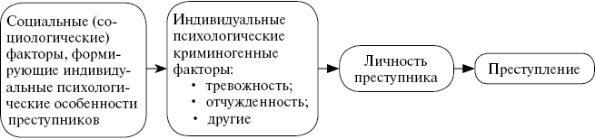 Таким образом, на этой криминологической схеме мы видим, как сочетаются социологические и психологические возможности в исследовании причин индивидуального преступного поведения.