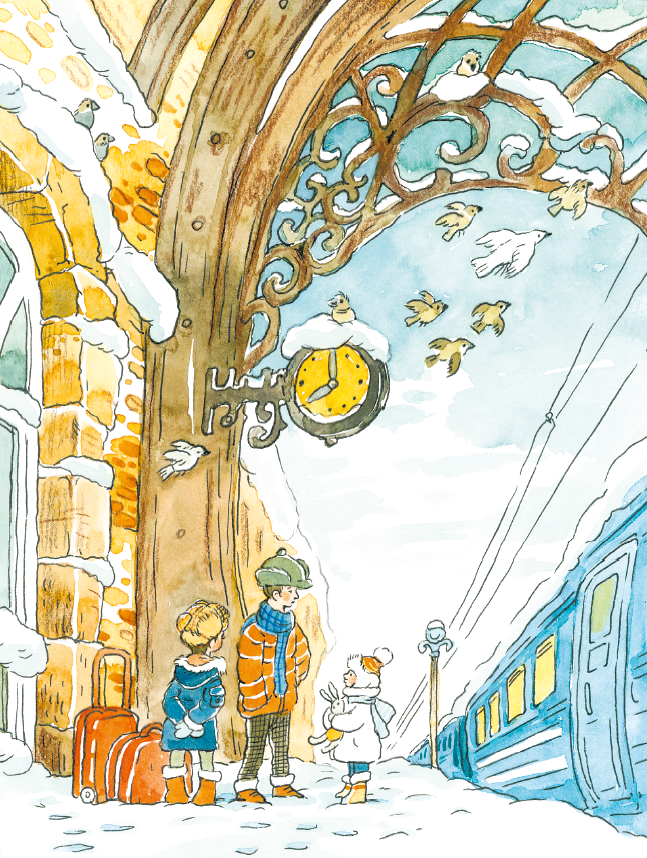 Когда прибыл поезд, Грушины погрузили чемоданы во второй вагон. Ещё какое-то время дети сидели в купе и веселились, рассказывая друг другу страшилки, а взрослые прощались на перроне. И лишь когда поезд показал свой заснеженный хвост, Тихомировы отправились домой.