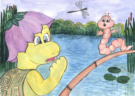 Черепаха Наталка сиділа на березі з вудкою в лапах.