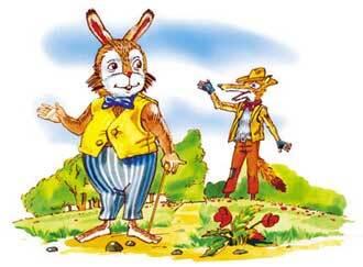 Выскочил Кролик из дверей и стрельнул в кусты, присел и ждёт Лиса.