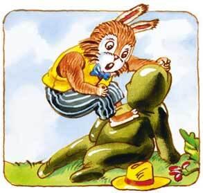 – Когда тебя спрашивают, надо отвечать, – говорит Кролик. – Сейчас же сними шляпу и поздоровайся, а нет – я с тобой разделаюсь по-свойски!