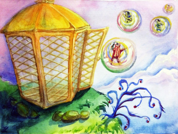 Это кричала Ссора. Совы, находившиеся вне поля зрения восковых человечков, побросали из своих лап с острыми когтями бумажные свёртки на землю. Одна из птиц в мгновение ока схватила мыльный пузырь, внутри которого была Ссора, немного покружила над деревней мыльных пузырей и улетела в королевство Ненависти. За ней последовали и другие совы.