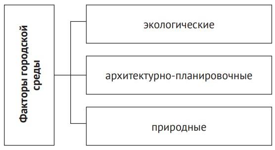 Городская среда является набором различных факторов среды жизнедеятельности города, которые влияют на комфортность территории города, среди которых: экологические, природные, архитектурно-планировочные, факторы |