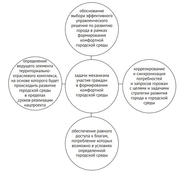 1) исследовать традиционные и современные подходы, методы, инструменты и принципы формирования механизма прямого участия граждан в формировании комфортной городской среды;