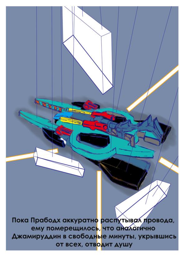 — Зачем ему эти поплавки? — Прабодх бросил взгляд на бело-серебристые продолговатые модули в углу. — Космос Лиги Антарктиды что ли осаживать? [Джамируддин. Что в твоих потемках еще за грозные прелюдии?]