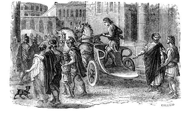 На рассвете четвертого дня перед Ноябрьскими идами (10 ноября) 675 года римской эры, в консульство Публия Сервилия Ватия Исаврика и Аппия Клавдия Пульхра, Рим кишел народом, который валил из всех частей города к Большому цирку.
