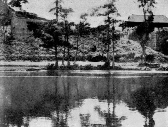 The village consists of a dozen or two native huts along the beach in a very pretty grove of coconut trees. Back of the village is a range of low mountains covered with tropical jungle. The main point of interest is a well constructed fort of stone, built on a small promontory that projects out into the bay. The walls of the fort are very massive and are surmounted at each of the four corners by a round watch tower. On its land side the fort is entered through a narrow gate that leads by a stone stairway to the top of the promontory. On various parts of the walls are carvings and inscriptions showing that the different bastions were built at different times.