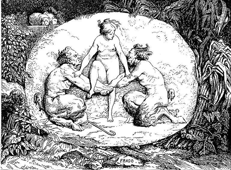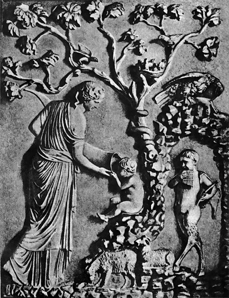 3. И сперва задумал было Ламон взять с собой одни только эти приметные знаки ребенка, его ж самого здесь покинуть; но затем устыдился, что козы он даже безжалостней, и, дождавшись ночи, приносит жене своей Миртале и приметные знаки, и ребенка, да и козу приводит. Она изумляется: неужели козы стали рождать детей? И рассказывает он ей все по порядку, как нашел его брошенным, как увидел козой его вскормленным и как стало стыдно ему покинуть ребенка на верную смерть. И она согласилась, что правильно он поступил. Затем они вещи, что были оставлены при ребенке, прячут, ребенка своим признают, кормленье его козе поручают. А чтобы имя у мальчика было таким, какое у пастухов в обычае, они его Дафнисом[7] назвать решили.