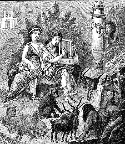 10. И делали все они вместе, стада свои пася друг от друга неподалеку. И часто Дафнис пригонял овец, отбившихся от стада, часто и Хлоя сгоняла с крутых утесов слишком смелых коз. Бывало и так, что один из них сторожил оба стада, когда другой чересчур увлечется игрою. А игры были у них пастушьи, детские. Хлоя на болоте сбирала стебли златоцвета, плела из них клетки для цикад и часто, этим занявшись, овец своих забывала. А Дафнис, нарезав тонких тростинок, узлы их колен проколов, одну с другою склеив мягким воском, до ночи учился играть на свирели. И вместе порою они пили молоко и вино, а еду, что с собой приносили из дома, делили друг с другом. И можно б скорее увидеть, что овцы и козы врозь пасутся, чем встретить порознь Дафниса с Хлоей.