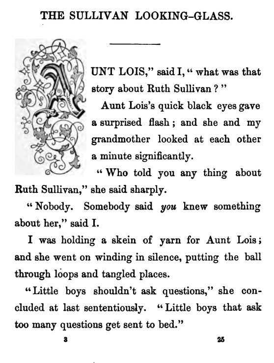 “Be there ghosts?” said Sam, immediately translating into his vernacular grammar: “wal, now, that are’s jest the question, ye see.” “Well, grandma thinks there are, and Aunt Lois thinks it’s all nonsense. Why, Aunt Lois don’t even believe the stories in Cotton Mather’s ‘Magnalia.’”