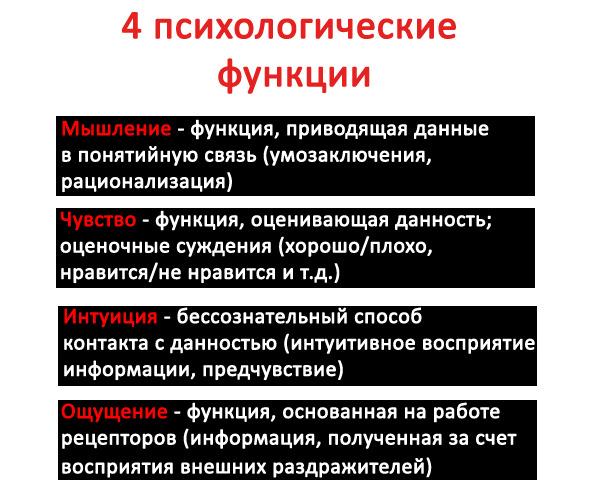 А какая у нас самая природосообразная из 4х функций личности (мышление, чувство, интуиция или ощущение; психические функции по К. Г. Юнгу ─ см. рис. 2 и рис. 3) в юнгианской психологии?