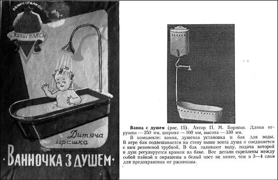 Ванночка с душем. Артель им. 10 съезда ВЛКСМ. Типография артели Бумпром, Одесса. После 1946