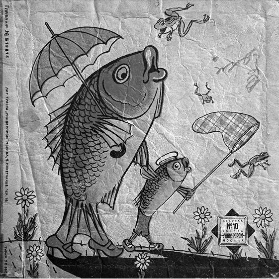 Рыбы по полю гуляют, Жабы по небу летают. Этикетка к игрушке «Путаница» по одноименной сказке К. Чуковского. Худ. К. Ротов. Фабрика № 10 треста Универпром. Москва. 1936