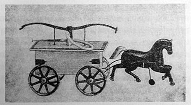 Лошадь с бочкой. Фабрика «Металлические механические игрушки П. П. Талаева с сыновьями». Россия. Начало ХХ в. Фото и описание: Емельянов Ю. В. Астрецовская игрушка. М.: Ура!, 2016