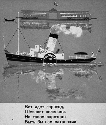 Пароход «Пионер». Введенский А. На реке. Худ. Е. Эвенбах. Госиздат. Ленинград. 1929