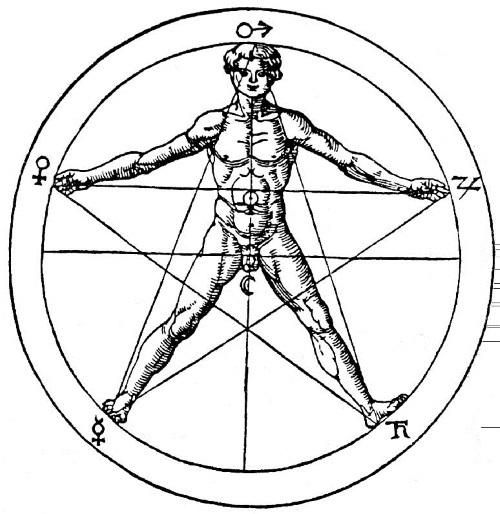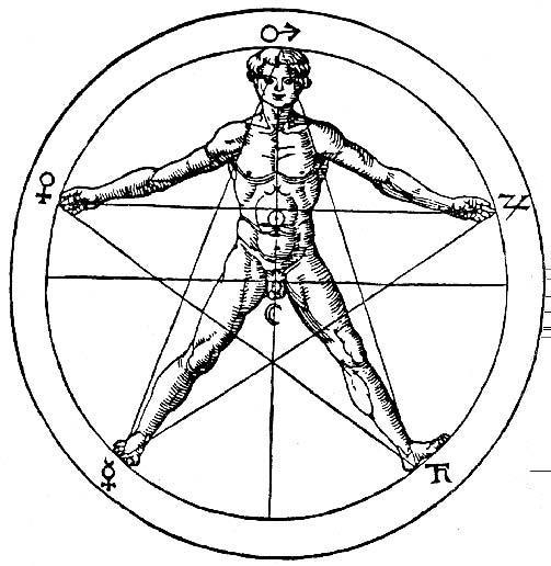Символическое представление человека как микрокосма (из книги «De Оcculta Philosophia» Агриппы, 1532 год)