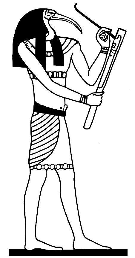 Копия древнего барельефа (на иероглифе он изображен в виде широкоплечего человека с головой птицы ибиса.