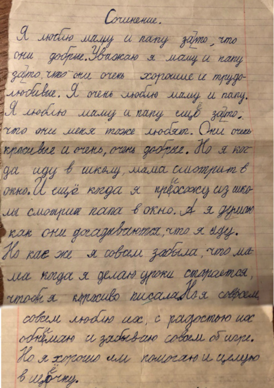 В детстве я боялась её строгого взгляда, больше всего на свете. Потому, что казалось, что с этого момента она больше не посмотрит на меня по-другому и не захочет больше меня обнять. Этот детский страх прошёл только к окончанию школы. Я смогла понять, что мамина любовь — вечная и она никуда не уйдёт.