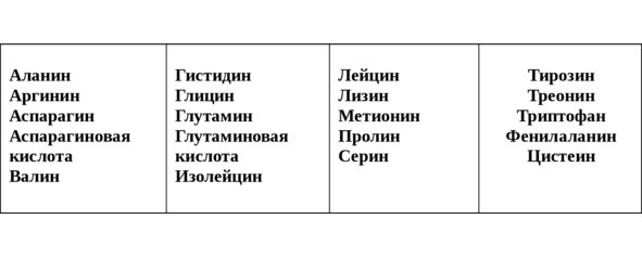 1. Незаменимые аминокислоты не могут синтезироваться животными организмами и обязательно поступают с пищей (аргинин, валин, гистидин, изолейцин, лейцин, метионин, фенилаланин, треонин).