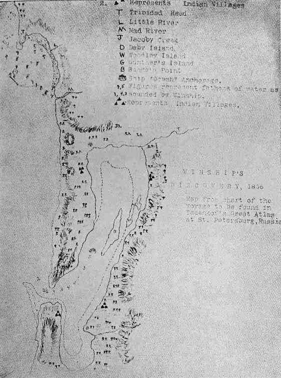 Humboldt Bay—from Russian Atlas the Hidden Harbor—thrice Discovered Winship, 1806. Gregg, 1849. Ottinger, 1850.