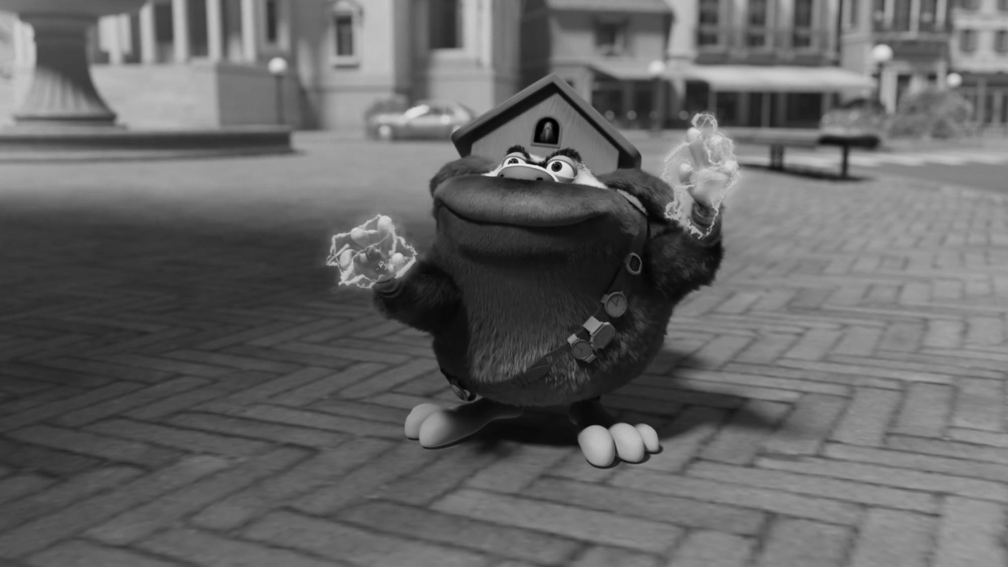 Домовые выскочили из дома мадам Фреш и помчались по улице. Теперь их цель — магазин господина Ку-ку!