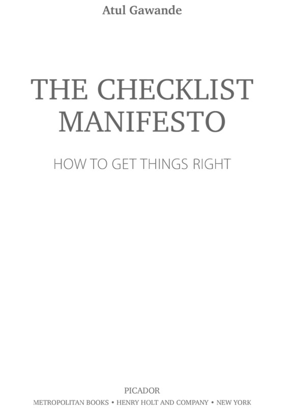 Чек-лист: Как избежать глупых ошибок, ведущих к фатальным последствиям / Атул Гаванде; Пер. с англ. — М.: АЛЬПИНА ПАБЛИШЕР, 2014.