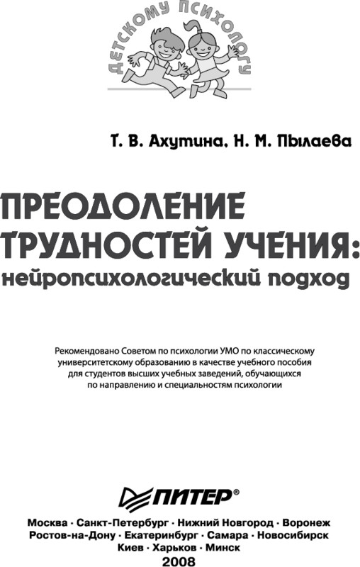 Преодоление трудностей учения: нейропсихологический подход. — СПб.: Питер, 2008. — (Серия «Детскому психологу»).