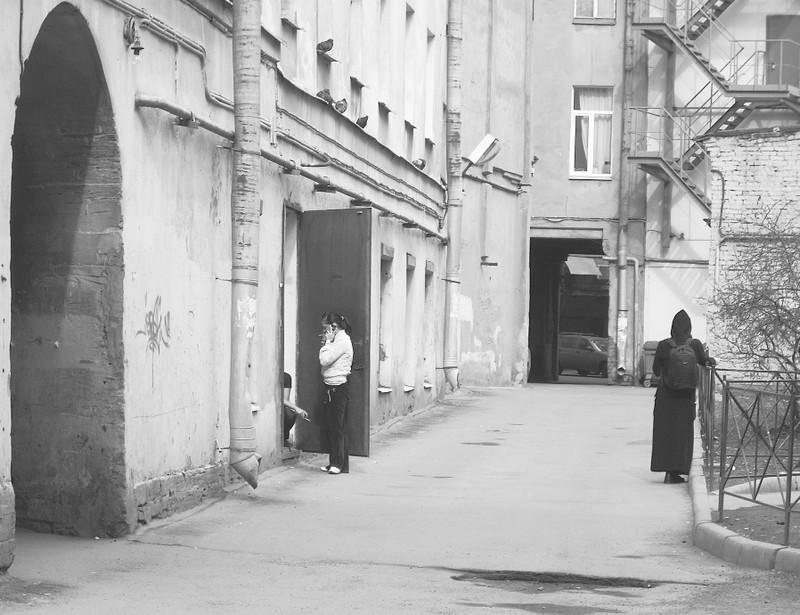 Спускаюсь вниз и сворачиваю в подворотню. Справа в стене, несколькими ступеньками ниже асфальта, чернеет дверь. Та самая – в старую дворницкую, тоже чуть приоткрытая, как и тогда, когда подворотню миновал Раскольников, направляясь к Алёне Ивановне. Но я уже не проверяю, лежит ли там по-прежнему топор под лавкой, и выскакиваю на улицу.