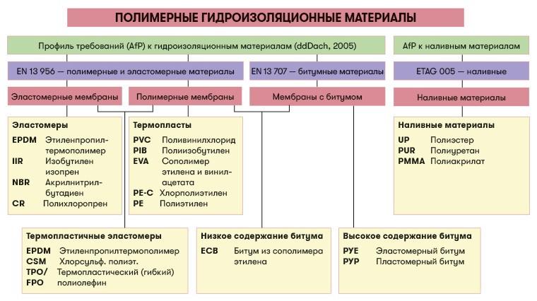 Европейские стандарты полотнообразных гидроизоляционных материалов и ETAG для наливных гидроизоляционных материалов устанавливают определенные минимальные требования, которые конкретизируются и дополняются посредством национальных норм и стандартов. Тем не менее сами планировщики тщетно пытаются руководствоваться критериями принятия решения в нормативных документах, которые могли бы им помочь в поиске продукции, наиболее подходящей для особых вариантов применения.
