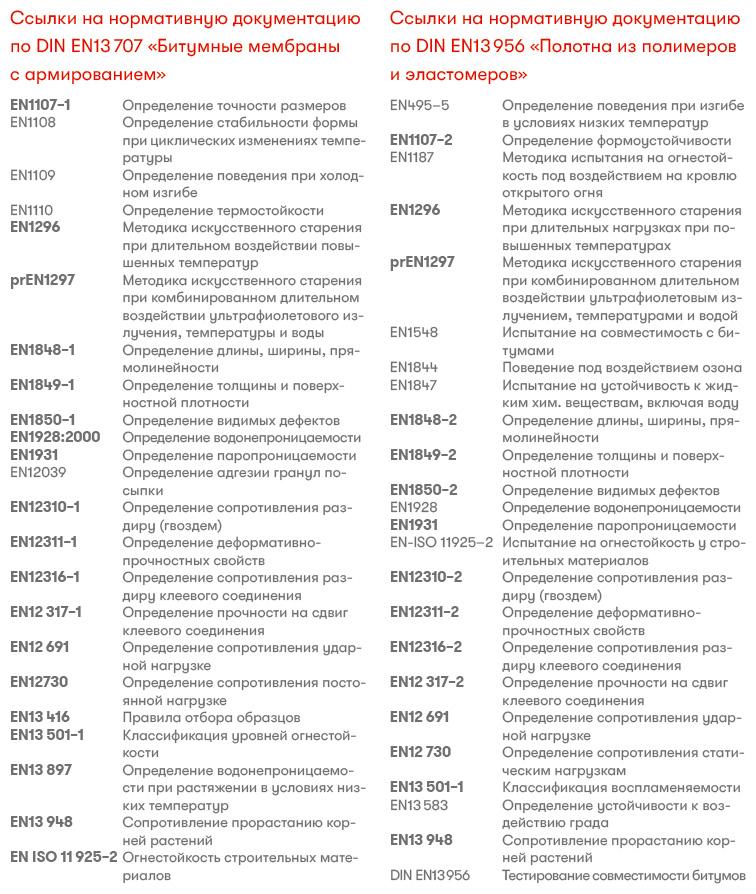 Прикладные стандарты для изоляционных изделий были разработаны в Германии в качестве DIN V 20000–201 — «Прикладного стандарта для гидроизоляционных материалов, выпущенного в соответствии с европейскими товарными стандартами для применения при гидроизоляции кровли» и