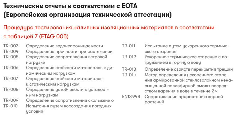 С сентября 2005 года к обороту допускаются только изоляционные изделия с маркировкой CE. Все ранее существующие национальные стандарты производства гидроизоляционной продукции с этого момента недействительны.