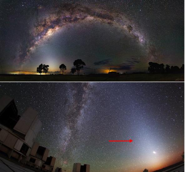 Главная опасность для таких аппаратов не астероиды, не метеориты и даже не щебень. Угроза существования АМС США при полете в зоне астероидов это следующее явление, которое наблюдается астрономами: «Зодиакальный свет — единственная возможность увидеть мелкие крупицы космической пыли и обломки комет с Земли невооруженным глазом». [5] Выше фотографии: «Млечный Путь и зодиакальный свет над Австралией»; «Зодиакальный свет, Млечный путь и телескопы VLT в обсерватории Паранал». [5] Сведения о структуре зодиакальных облаков в области пояса астероидов: «Частицы астероидов, излучающие видимый зодиакальный свет, имеют средний радиус около 40 мкм. Типичное время жизни частиц зодиакальных облаков главного пояса составляет около 700 000 лет». [6] Пролететь сквозь зодиакальные облака пыли не получится. Мифология НАСА об этой проблеме умалчивает. Нет никаких сомнений, что эти облака пыли находятся в зоне поясов астероидов, где происходили столкновения астероидов и метеоритов.