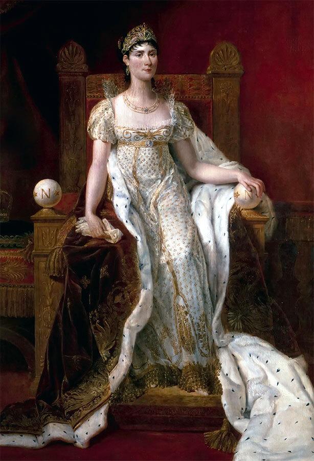 В 1804 году Наполеон объявил себя Императором, и главный стиль ампир – величественный, имперский, строгий и шикарный одновременно. Жозефина, супруга Наполеона, обожала бесстыдную роскошь – в причудах она себе не отказывала: её знаменитое платье, «покрытое сотнями тысяч лепестков роз, нашитых на тончайшую кисею, украшенную бриллиантами, всех сводило с ума, а платье из пёрышек экзотических птиц с жемчужинами вызывало восторг у всех женщин Европы».